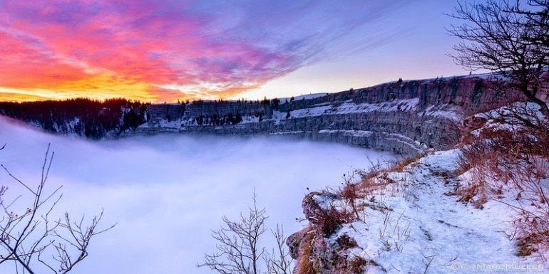 Расположенный на границе швейцарских кантонов Невшатель и Ваадт, раскинулся во всем своем величии Кре-дю-Ван — огромный живописный утес в форме подковы. Вертикальный обрыв скалы достигает 160 метров высотой и окружает долину длиной в 4 километра и шириной в 1.4 км.