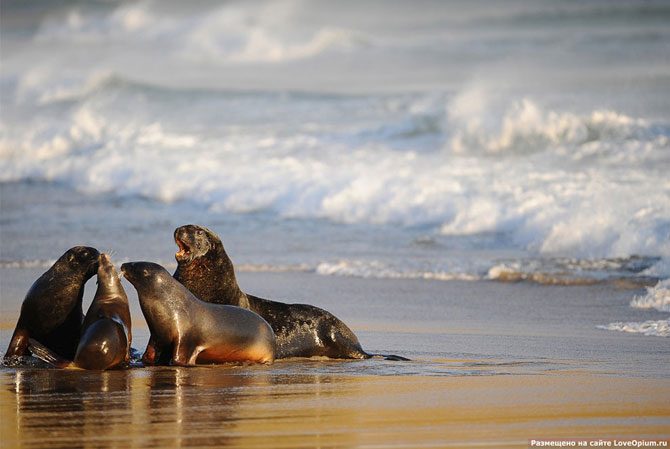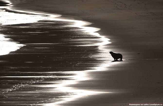 Тюлень на пляже города Данидин, 21 сентября 2011. В прибрежных водах Новой Зеландии обитает до 3 000 видов рыб и других обитателей моря. Флора страны насчитывает около 2 000 видов растений.