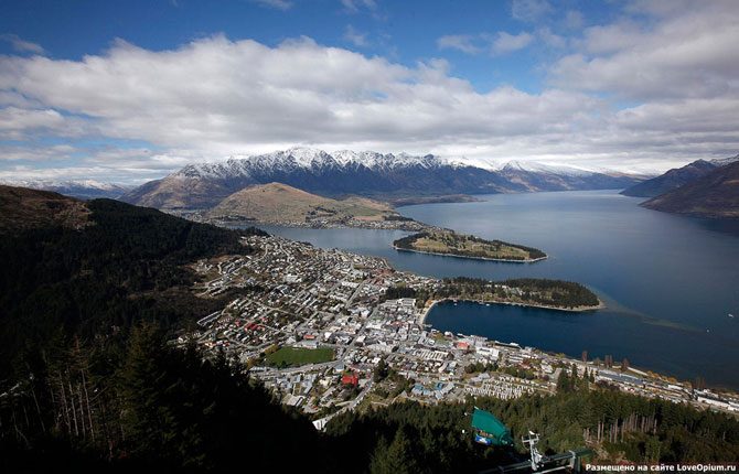 Третье по площади озеро страны — Уакатипу, которое имеет ледниковое происхождение, и новозеландский альпийский курорт Квинстаун. По легендам коренного народа Новой Зеландии маори, процесс изменения уровня воды в озере — это сердцебиение великана, чьё тело образует ложе озера, 14 сентября 2011.