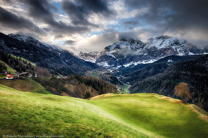 В этом посте хочу показать своеобразную фотоисторию одного съемочного утра в Доломитовых Альпах. Стремительно меняющаяся погода, туман и облака, дождь и солнце – все это было в одно утро…