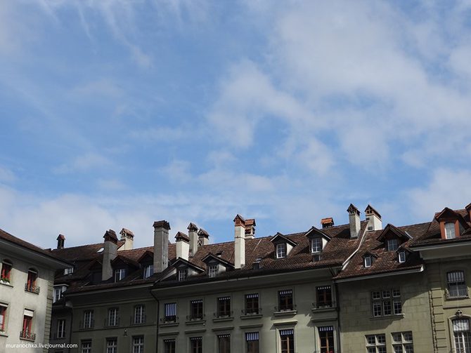 И, конечно, черепичные крыши. В Берне они тёмно-коричневые и с большим количеством труб: