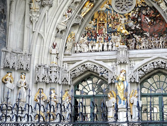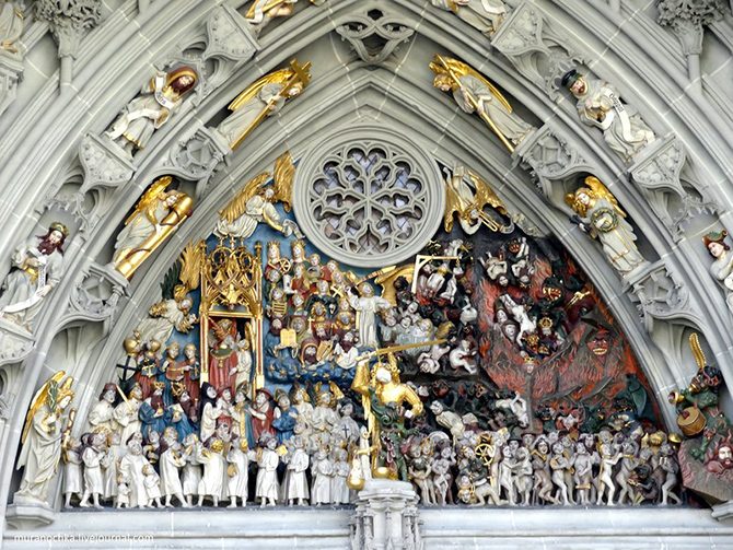 На композиции Эрхарта Кюнга «Страшный суд» над главным входом изображены 234 проклятые и спасенные души, представляющие все сословия общества: