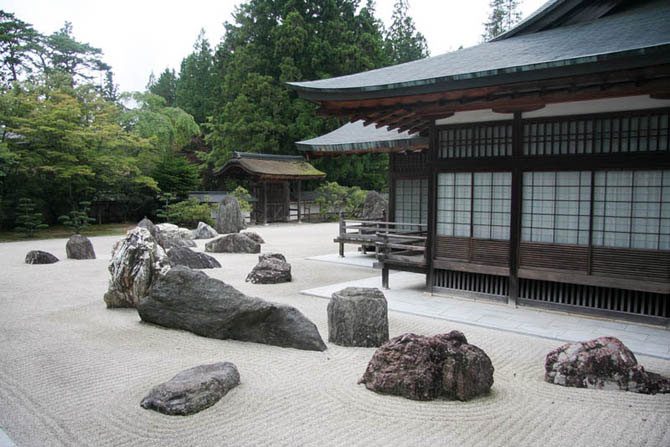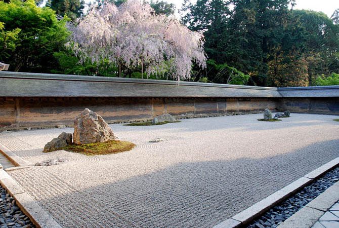 Камни используются для строительства дорожек, мостов и переходов. На фото: каменный сад Дзен, Япония.