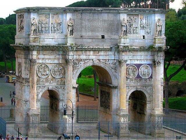 Расположенная рядом с Колизеем в Риме, Арка Константина была возведена в 315 г. н.э. в честь победы императора Константина I над императором Максенцием. По словам летописцев, Константину было видение, что Бог обещал победу, если его армия нарисует крест на своих щитах. Одна из самых известныхдостопримечательностей Рима.