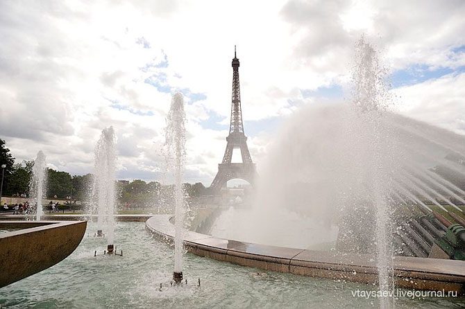 Лучше начать свой визит с площади Трокадеро (Trocadero, линия метро 6,9), где открывается завораживающий вид на Эйфелеву Башню. Спустившись по ступенькам и пройдя мимо фонтанов дойти до Марсового поля. После развернуться и выйти на набережную Сены, где гуляет почти всегда прохладный ветерок.