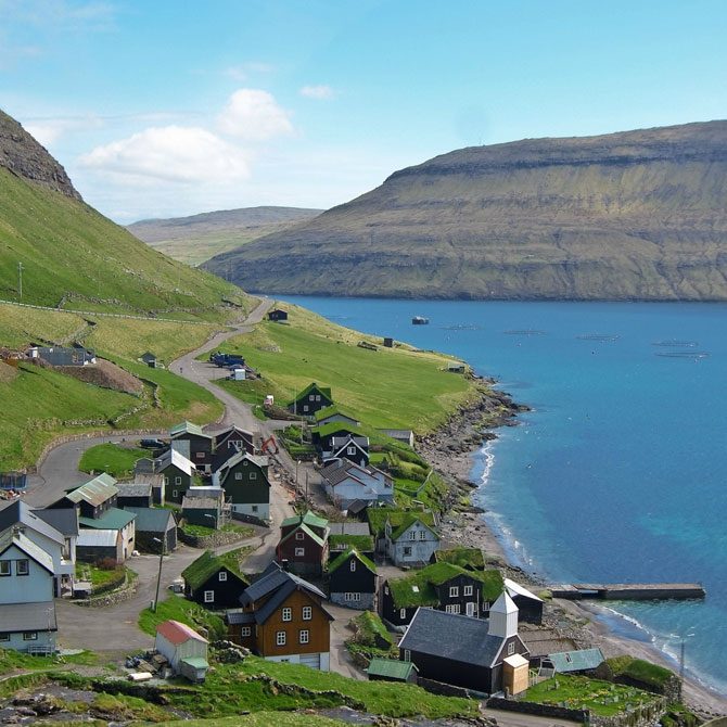 Население – 80 человек. Kirkjubøur – самая южная деревня на острове Стреймой, является важным для страны историческим местом.