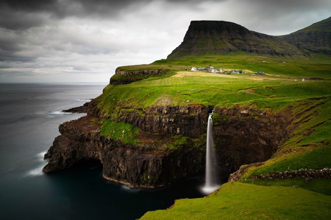 Население – 49 человек. Деревня Gjógv расположена на северо-восточной оконечности острова Эйстурой, на Фарерских островах и в 63 км к северу от дороги из столицы Tórshavn. Деревня была названа в честь 200-метрового ущелья, уходящего прямо в море.