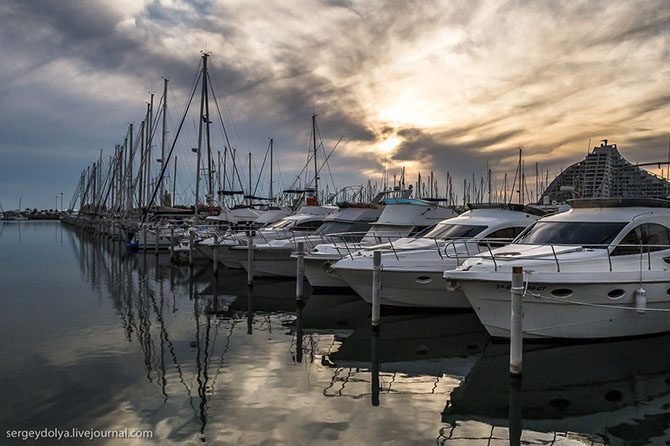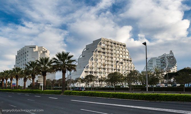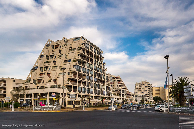 Ла-Гранд-Мотт – популярный французский курорт, спроектированный одним архитектором. Полвека назад тут были песчаные дюны и пустота, а сегодня настоящий город-сад. Проект архитектора был незаурядным: большая часть строений повторяла формы пирамид инков.