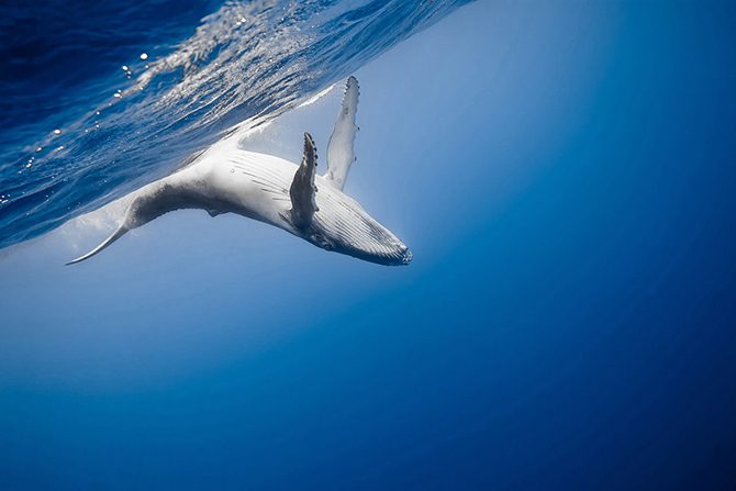 Великолепный горбатый кит. Из всех китов это самый игривый и легконравный, всегда окружённый весёлыми брызгами и белой пеной. (Фото Marc Henauer / National Geographic Traveler Photo Contest):
