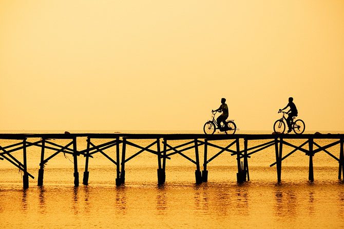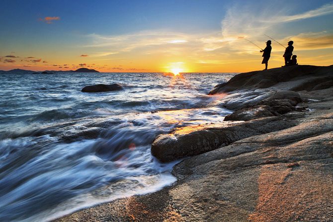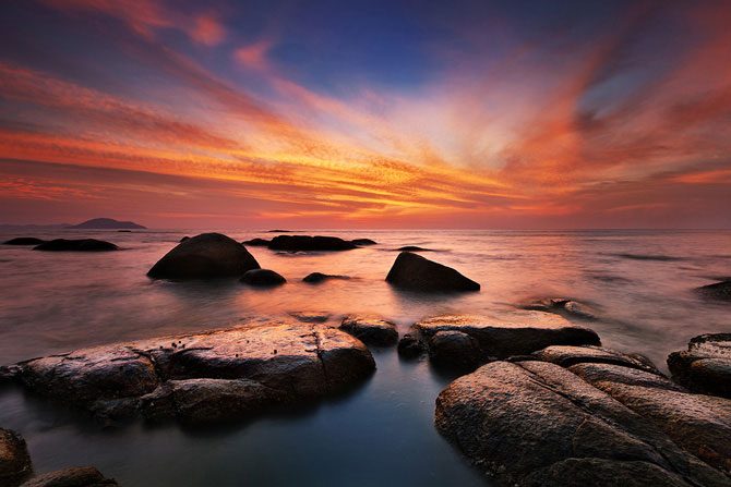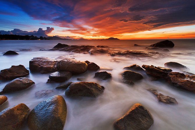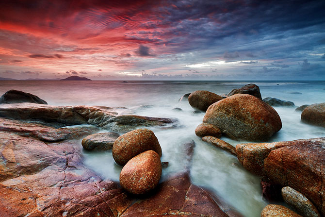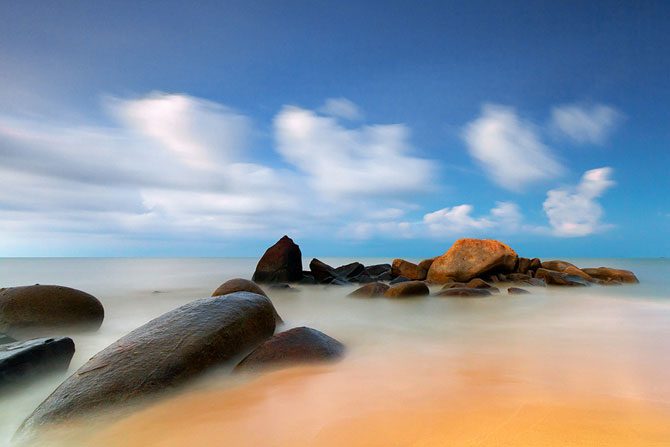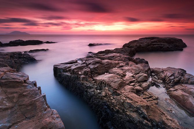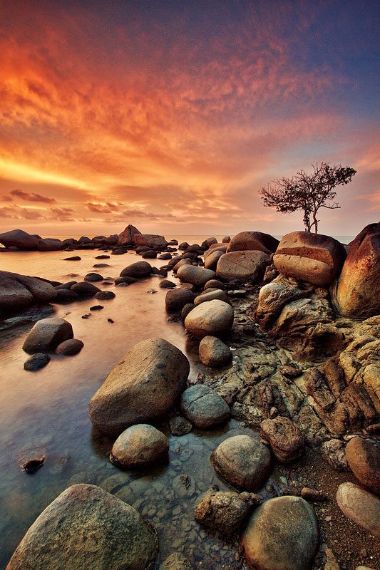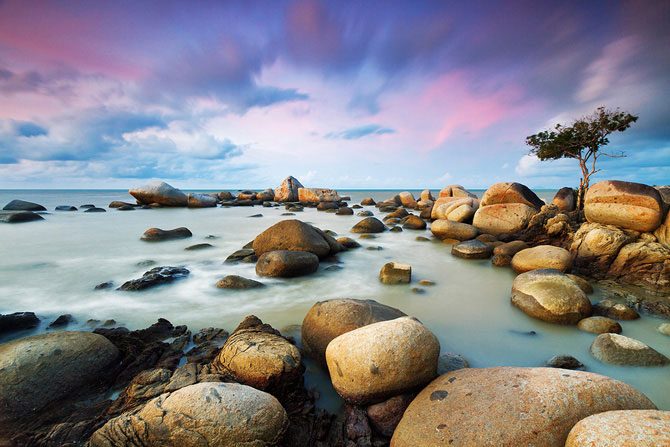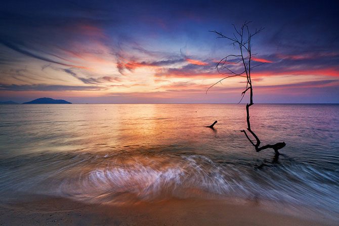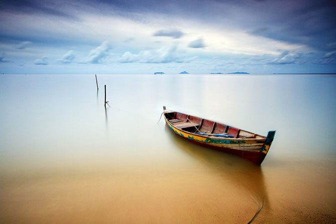 Фотограф из Индонезии Бобби Бонг в предрассветные часы или на закате делает с берега невероятные по красоте снимки, используя широкоугольный объектив и часто прибегая к длинной выдержке.
