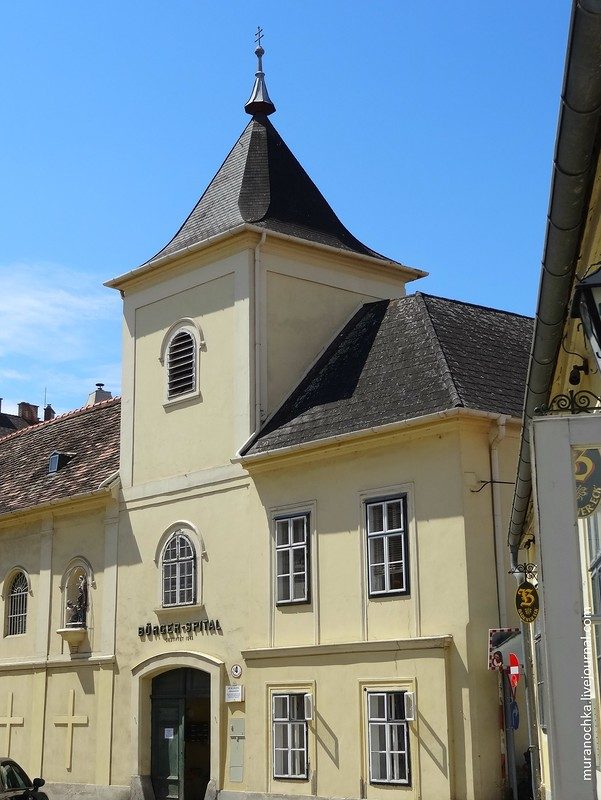 Но на Хауптплац есть и ещё не менее интересные достопримечательности. Прямо за Чумной колонной расположился так называемый Императорский дворец, или просто Кайзерхаус. Это белое здание с зелёными окнами в левой части фото: