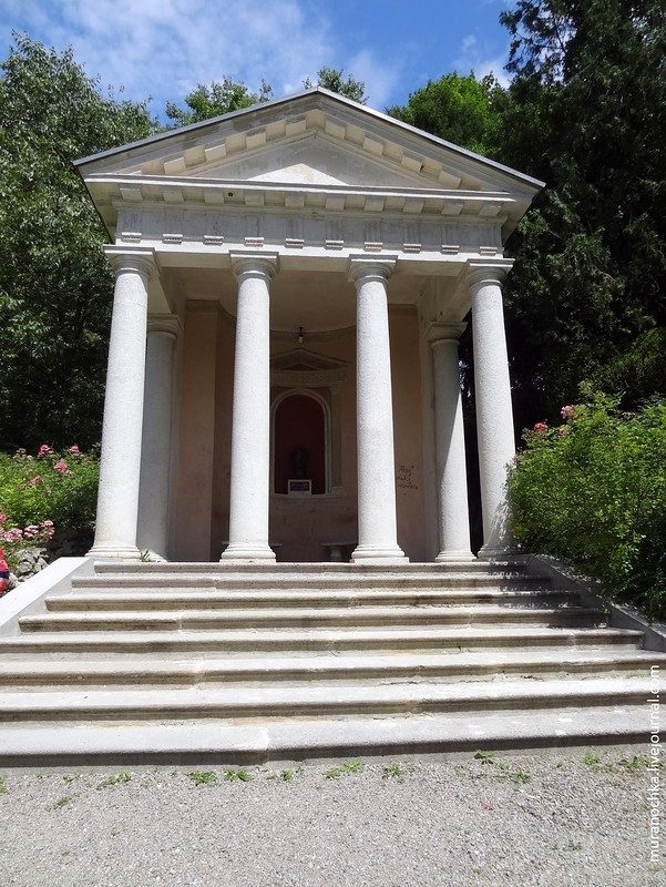 Есть в парке посвящение ещё одному известному композитору – Вольфгангу Амадею Моцарту. Вот в этом Храме Моцарта установлен бюст композитора: