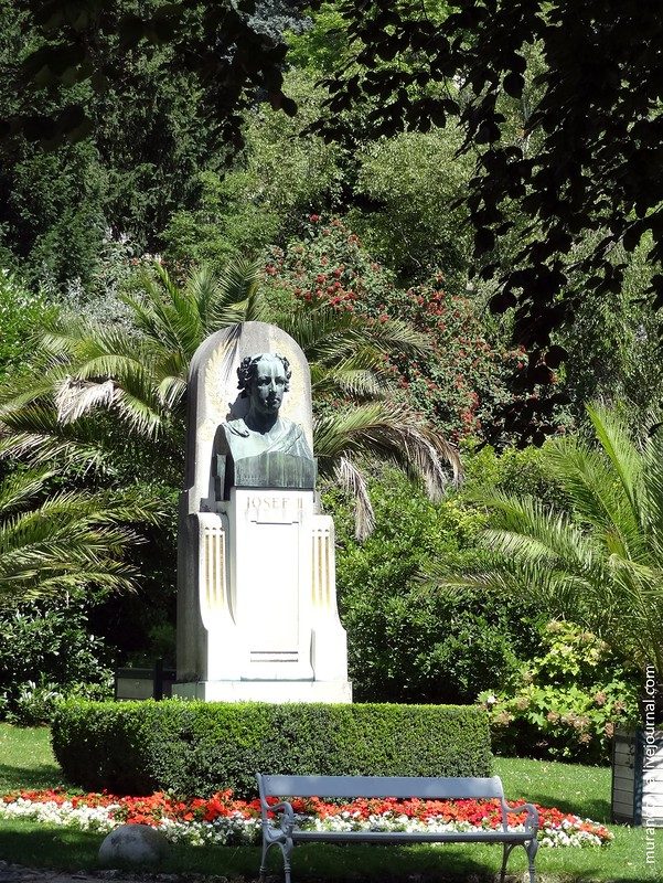 Вот, к примеру, памятник, посвящённый двум талантливым композиторам и музыкантам – Иоганну Штраусу старшему и Йозефу Ланнеру, которые приезжали в парк на летние концерты. Установлен памятник на небольшой лужайке в обрамлении яркой цветочной клумбы: