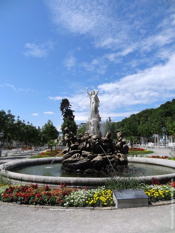 Но меня больше интересовал другой фонтан, который я в прошлое посещение Бадена не успела как следует изучить. Это фонтан «Ундина» работы австрийского скульптора Йозефа Кассина. Установлен был в 1903 году. На всякий случай, если кто не знает, ундинами в европейской мифологии называют духов воды в облике прекрасных дев, заманивающих своей красотой и очарованием мужчин в водные глубины. В общем, те же самые русалки: