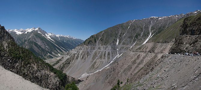 Это вторая по высоте дорога в Индии. Люди здесь не живут, а вот животные, наоборот, чувствуют себя на такой высоте вполне комфортно. По мере приближения к Ладакху ландшафт становится всё более скудным, по контрасту с зеленым Кашмиром.