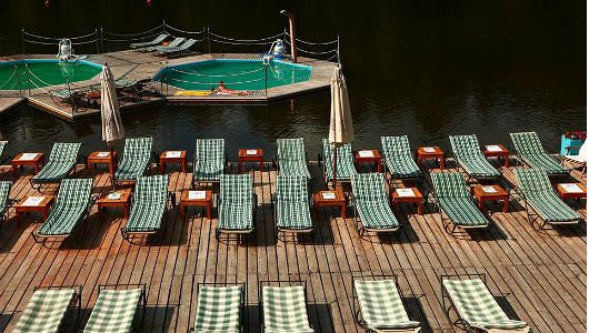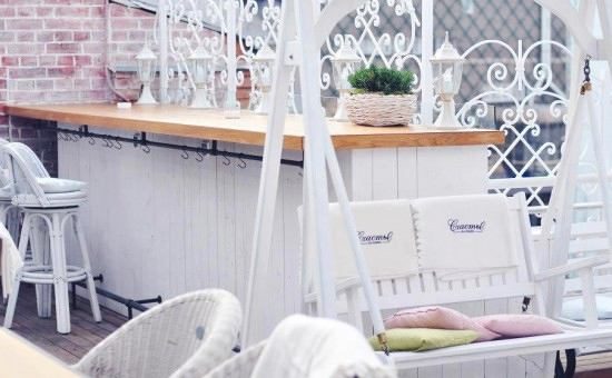 Закончим наше путешествие на «Причале». Знаменитая рублёвская веранда предлагает летний отдых в его классическом понимании: река, бассейн, шезлонги, коктейли всех цветов радуги и прелести мангала с коптильней. Пляжный сезон, кстати, уже открыт. На случай внезапного летнего ливня тоже всё предусмотрено — веранда с плетёной индонезийской мебелью задрапирована настоящими парусами. И, конечно, знаменитая причаловская плавучая беседка-шатёр — летний бестселлер для романтических вечеров.