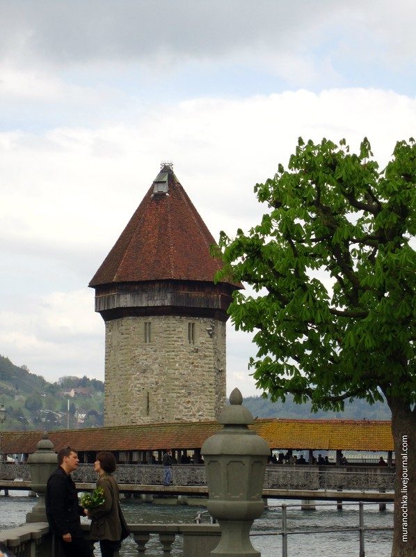 А вот и первый открыточный вид, который есть наверняка у каждого, кто побывал в Люцерне, – башня Вассертурм у моста Капелльбрюкке. А у меня ещё и чайка в кадр попала )))