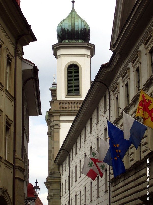 Тут же на набережной вход в Иезуитскую церковь (Иезуитенкирхе) – одно из старейших и красивейших барочных зданий в Швейцарии: