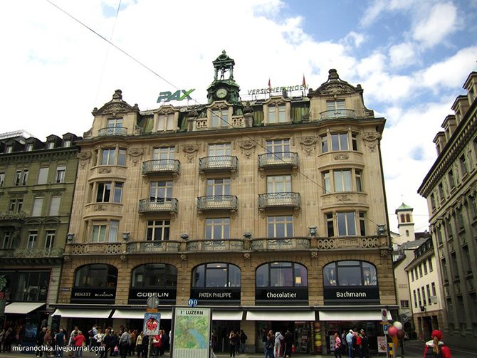 А вот и первые признаки швейцарской роскоши в этом городе – магазин часов и ювелирных изделий класса люкс «Бюхерер»: