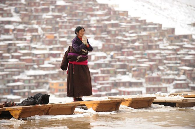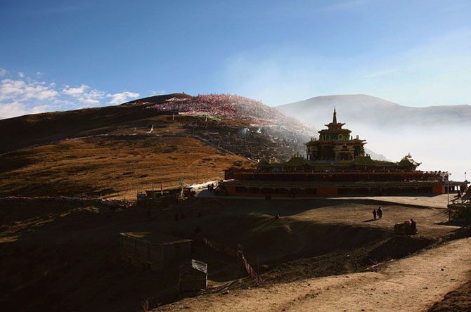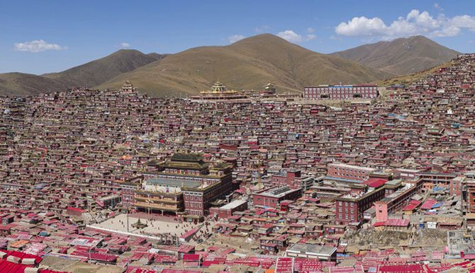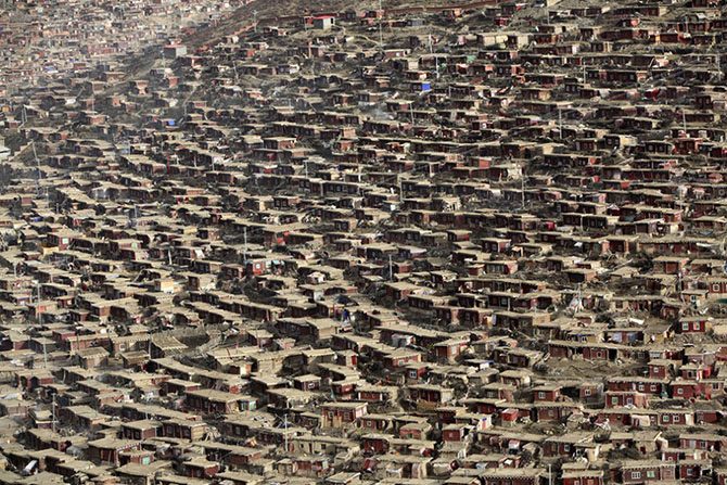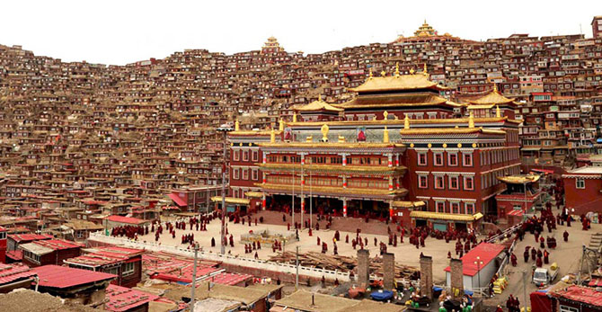 Монастырь Сэда, крупнейшая в мире школа тибетского буддизма, в окружении жилищ, в которых проживает до 40 тысяч монахов и монахинь, октябрь 2013 года.