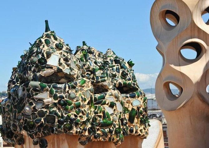 На крыше можно увидеть причудливой формы трубы. Они весьма напоминают сюрреалистических существ и сами по себе уже являются предметами искусства