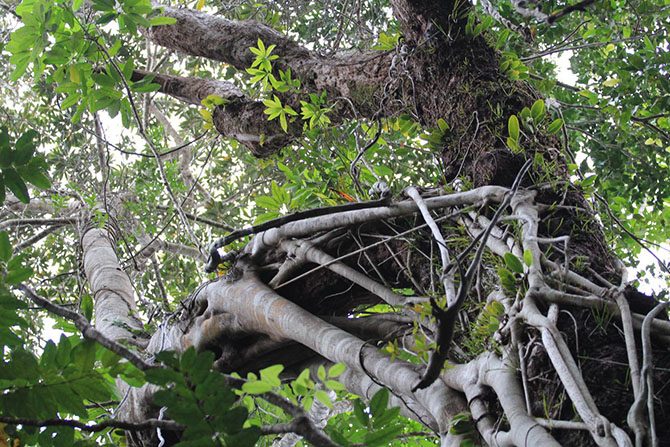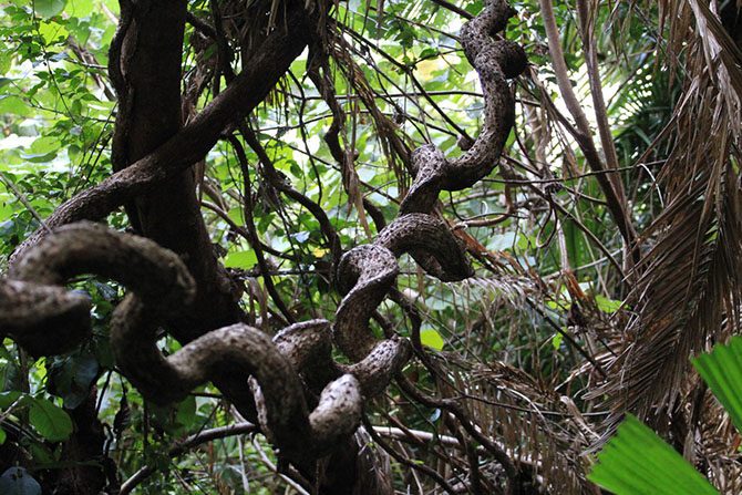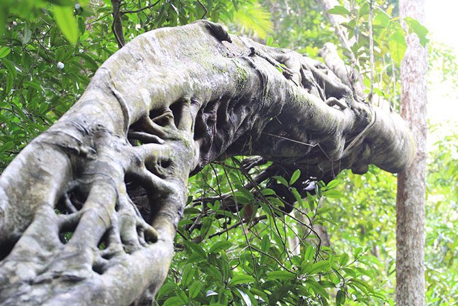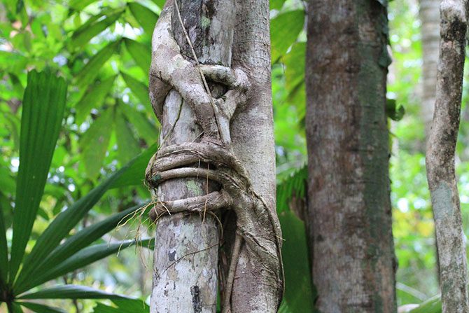 Это растение обвивает дерево и тоже поднимается к солнцу, где на верхней ветке отращивает свой ствол. Когда дерево-донор умирает и сгнивает, остается только узорчатый ствол паразита.