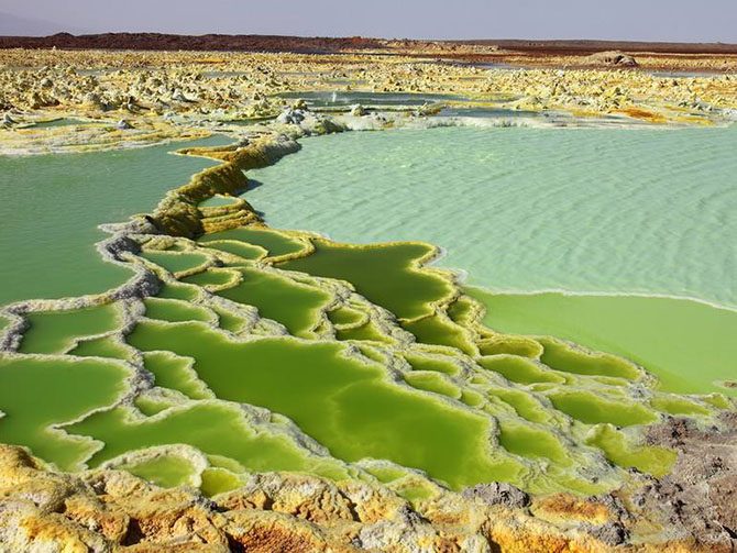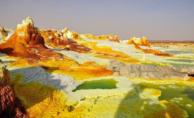 В северной части Эфиопии расположена уникальная природная достопримечательность – вулкан Даллол, который местные жители называют воротами в ад. Это место по праву считается одним из самых экстремальных в мире, здесь всегда очень жарко, много минеральных источников и петляющих дорог.