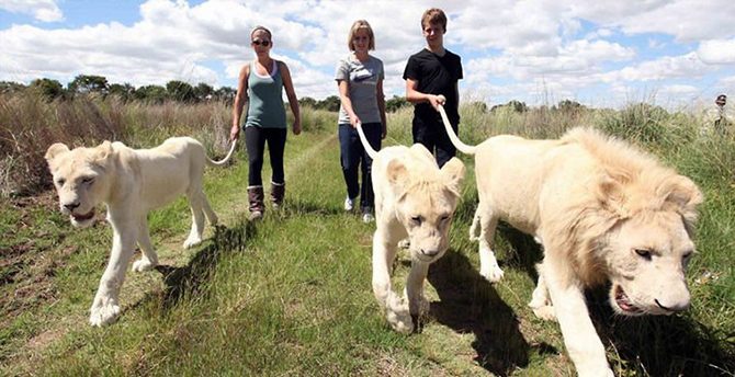 Если вы обожаете больших кошек, то вам определённо стоит остановиться в этом отеле, путешествуя по Южной Африке. Здесь предлагается уникальная услуга — прогулка со львами. Общение с хищниками происходит только в присутствии и под контролем гида, имеющего 15-летний опыт работы с хищниками семейства кошачьих.