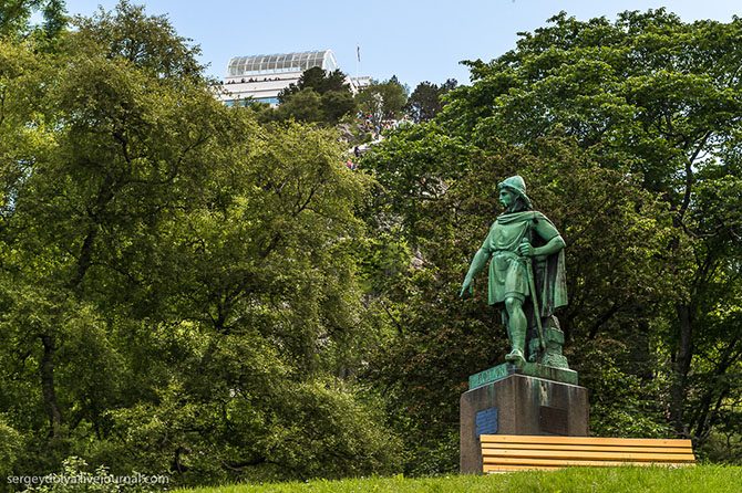 Корабль в центре кадра – первый в Норвегии автомобильный паром, грузоподъемностью 1-2 машины. Сейчас стоит как памятник: