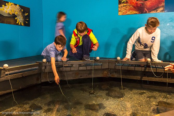 Ещё есть аквариум, где можно потрогать морских гадов: