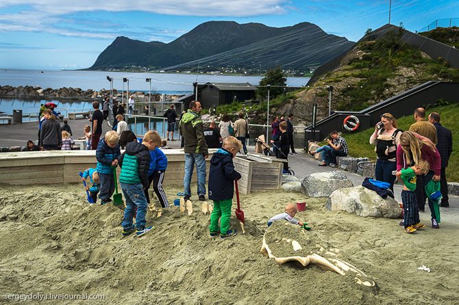 Еще одна развлекуха – откопать скелет кита. Причем я не знаю, что меня поразило больше: сама идея или то, что каждый вечер сотруднику океанариума приходится «хоронить» кита обратно: