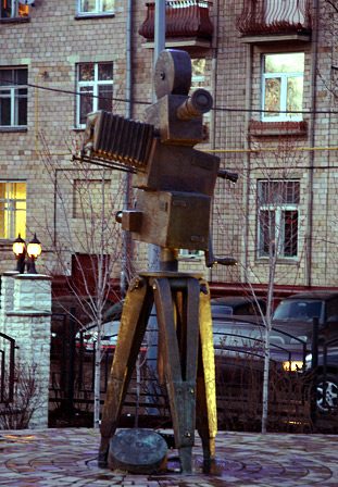 Памятник кинокамере на Мосфильмовской тоже не единственный в столице. У входа во ВГИК, на ул. Вильгельма Пика, есть целая композиция из камеры, платформы под ней и осветительного юпитера.