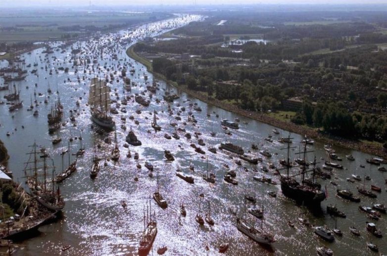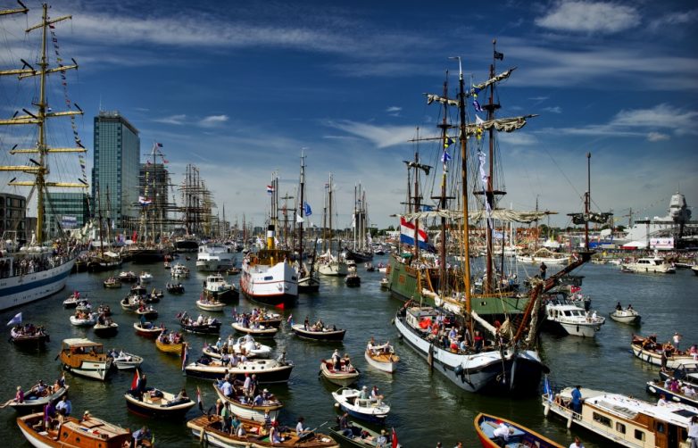 Раз в 5 лет в Амстердаме проходит парад кораблей SAIL Amsterdam. В августе тысячи судов, от небольших парусников до многомачтовых кораблей, собираются в бухте Эй на севере города, а затем огромным морским парадом проходят вдоль столицы Нидерландов. В 2000 году в мероприятии участвовало 8 тысяч судов! Впечатляет, не правда ли?