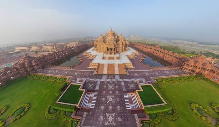 Одним из наиболее удивительных храмов в мире является храм Акшардхам в Нью-Дели. Это здание представляет собой смесь технологий современности и традиционных архитектурных стилей. На площади более 8000 квадратных метров на берегу реки Ямуна без использования стали был построен храм из песчаника и мрамора, который сейчас привлекает массу туристов в индийской столице. Строительство храма размером 106х94х42 м обошлось в полмиллиарда долларов, которые были собраны за счет благотворительных пожертвований.