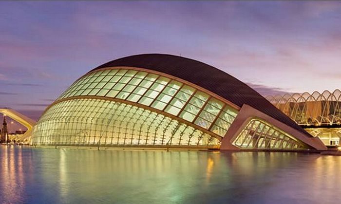 Город искусств и наук — культурный и архитектурный комплекс развлечений, который был сооружен на осушенном дне реки в Валенсии, Испания. Дизайн архитектурного комплекса, состоящего из 5 зданий, был разработан валенсийским архитектором Сантьяго Калатрава, а само строение было возведено в июле 1996 года.