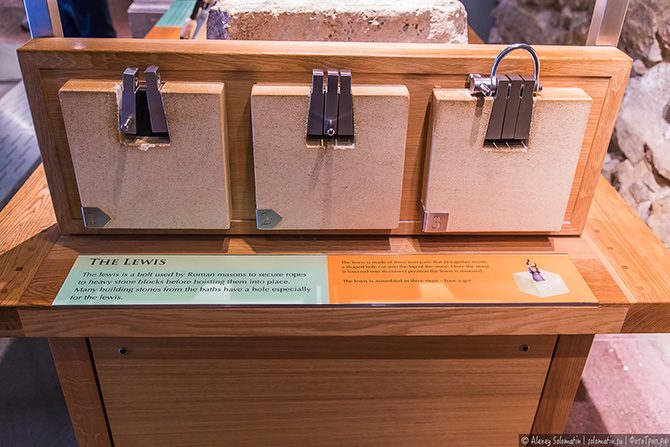 Здесь показано, как хитрые римляне крепили блоку к подъемнику. Сначала делалось отверстие в блоке, далее поочередно вставляли три модуля конусного крепления. Среднее, выполняло роль распорки: