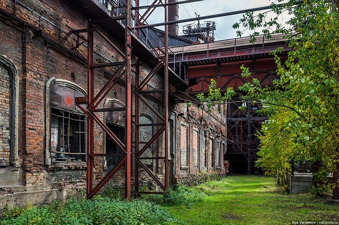 Планировку XVIII века тоже удалось сохранить. Издалека завод похож на декорации к фантастическому фильму в жанре стимпанк.