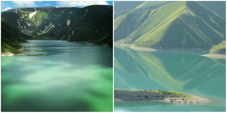 Красиво? Это высокогорное озеро Кезеной-Ам — самое большое озеро Северного Кавказа, расположенное на границе Чеберлоевского района Чеченской республики и Ботлихского района Дагестана.