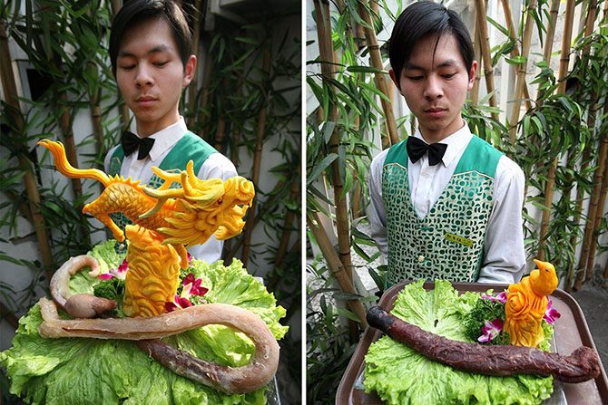 «Guolizhuang» это ресторан в Пекине, который специализируется на блюдах, которые могут заставить вас поёжиться: пенисах. Меню было создано человеком по имени мистер Гуо, он сбежал во время гражданской войны в Китае в 1949 году и начал исследовать традиционную китайскую медицину, в частности, гениталии различных животных. Он обнаружил, что у людей, употребляющих в пищу гениталии животных понижен уровень холестерина, повышена потенция и отсутствуют различные заболевания.