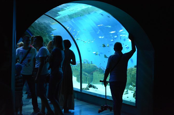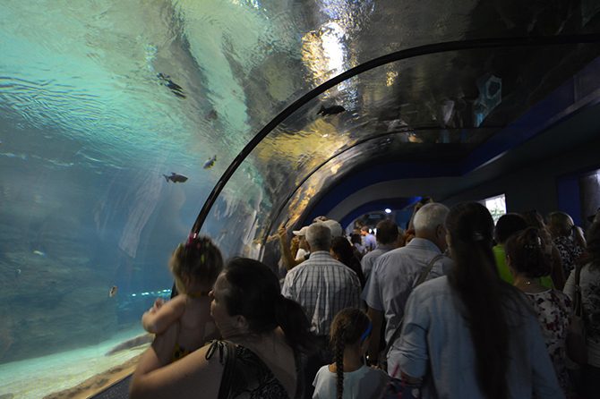 Друзья, потерпите немного, выберите будний в октябре и сходите. Будет спокойнее, и дешевле… А океанариуму советуем почаще мыть стекла в аквариумах…