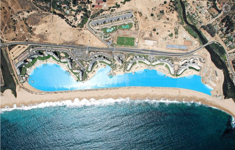 14. Окунуться в крупнейшем бассейне в мире, расположенном на берегу Тихого океана в Чили, на курорте Сан-Альфонсо-дель-Мар. Бассейн вмещает более 250 тысяч кубометров воды, его площадь составляет 8 гектаров, а глубина — 35 метров.