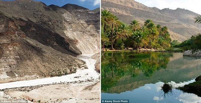 Каждый год на территории вдоль побережья Аравийского моря в Омане можно наблюдать удивительную картину: на три месяца безжизненная каменистая пустыня превращается в пышный зелёный оазис. Причиной этого явления, которое называют одним из чудес света, служат сезонные дожди.