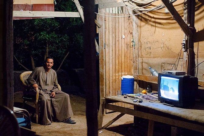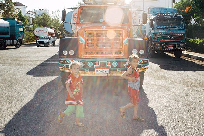 Водители Мохамед и Могаа ремонтируют двигатель старого грузовика. Вместе они перевозят пресную воду со станции очистки в городе Эльтур в Шарм-эль-Шейх. Работая по 15-17 часов в сутки, они совершают 3-4 рейса, сменяя друг друга за рулем.