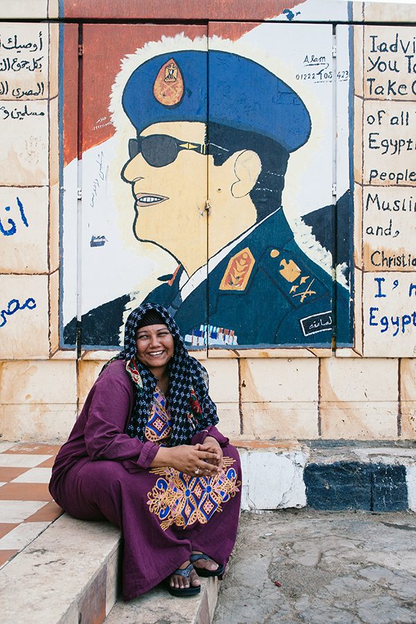 Портрет женщины на фоне рисунка военного героя. Имя героя неизвестно, его лицо — образ военных, принимавших участие в конфликтах на Синае.