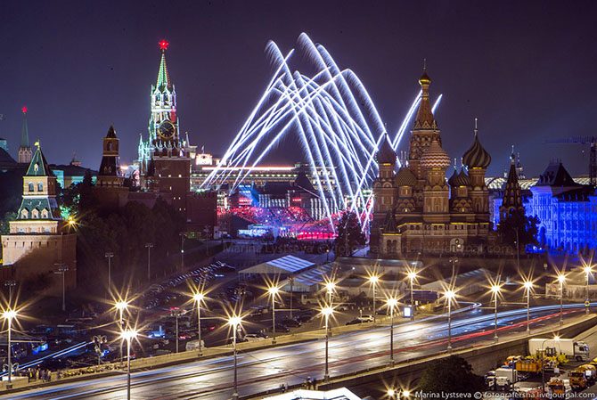 Вид с отеля «Балчуг Кемпински» на фестиваль Спасская башня 2015.