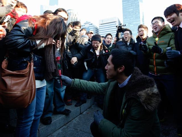 Иногда в этой стране доходит и до абсурда. В Сеуле предприняли неудачную попытку соединить сердца молодых и одиноких корейцев, организовав масштабное свидание вслепую в одном из городских парков. На мероприятие собрались несколько тысяч человек, но подавляющее большинство из них оказались мужчинами.