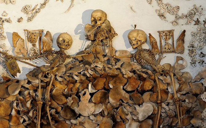 Эта жуткая, но очень привлекательная пещера находится под церковью Santa Maria della Concezione в Риме, здесь находятся кости более чем 4000 монахов, которые умерли в период с 1500 до 1870, кости декорированы вдоль стен.