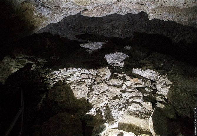 31. Грот Хлебниковых имеет площадь 1 300 кв.м и полностью завален глыбами.
