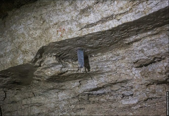 34. Из грота можно попасть в заповедную часть пещеры. Эта часть пещеры была открыта сотрудниками экспедиции «Гидростройпроекта» в 1935 году, о чем сообщает надпись на стене «Ход в нов. откртые грота 5/II –1935г».