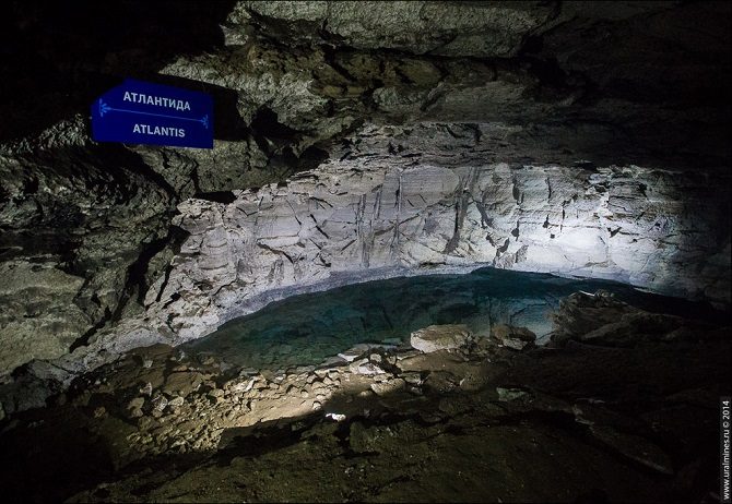 30. Еще одно подземное озеро примечательно тем, что в нем проходят крещенские купания. Всего в Кунгурской пещере насчитывается около 70 подземных озер. В воде обитают уникальные рачки — крангониксы Хлебникова.